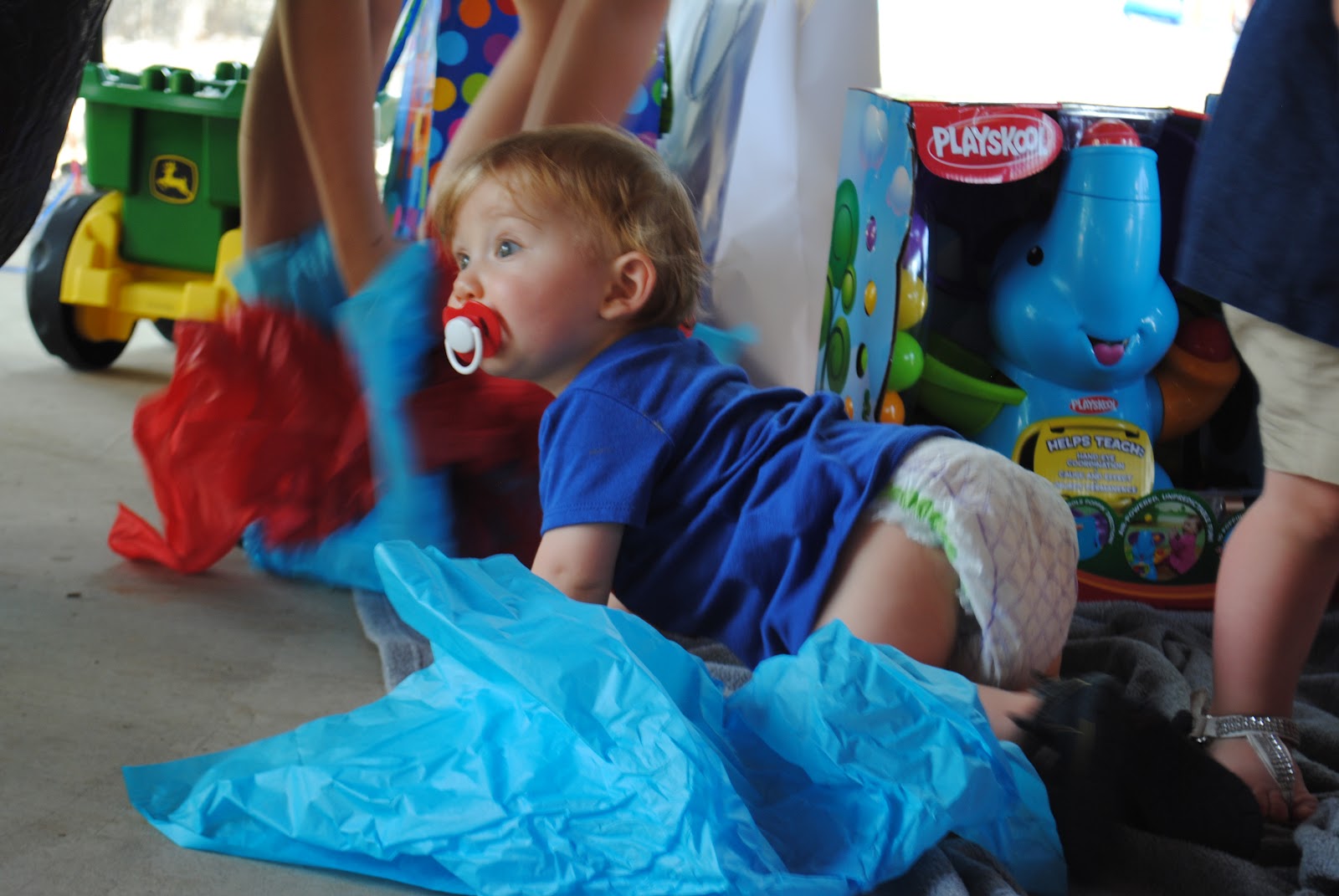 Time for presents!!! This part he liked :) He got so many wonderful gifts! So many cool toys, books, blankets, and cute clothes. We appreciate everything he got! He is very blessed to have such wonderful family and friends